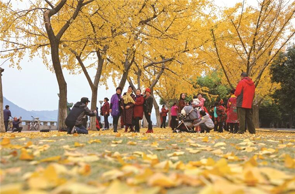 12月19日,市民在城区滨江公园赏杏叶、拍美照。滨江公园金黄的银杏叶随着微风缓慢掉落,成为滨江一道美丽的风景,吸引不少市民拍照留影。得益于我市出台的“落叶不扫”新政,城区10余处公园和落叶景观道路现“落英缤纷”美景,让宜人之城更加怡人。 记者 黄余洋 摄