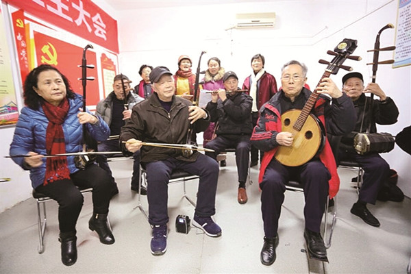 ③2017年12月29日,宜昌大公桥街办胜利二路社区和平佳园里琴声飞扬、欢声笑语,一场别开生面的音乐会在这里举行,辖区和平乐队为居民演奏演唱《映山红》《我的祖国》等经典歌曲,喜迎新春。 记者 吴延 摄