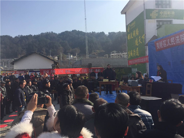 当日,夷陵区法院在下堡坪集镇设立巡回法庭公开审理邓某某等四人滥伐林木一案,300余名干部群众参加旁听。庭审过程中,公诉人宣读起诉书、出示全部证据材料并发表了公诉人意见,四被告人均对公诉人所指控事实及证据无异议,法院当庭宣判,分别判处四被告人六个月至一年不等有期徒刑,并处1000元至2000元不等罚金。