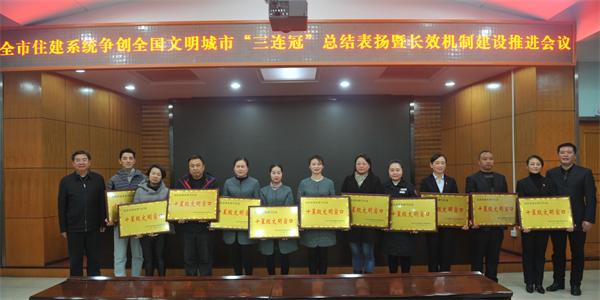 本网讯(通讯员 周纯)2017年12月29日,市住建委召开争创全国文明城市“三连冠”总结表扬暨长效机制建设推进会议,总结前期创建工作经验,表彰了市直住建系统10个争创全国文明城市先进单位(科室)、41个先进个人,为全市12家供水供气“十星级文明窗口”颁发了奖牌;安排部署市直住建系统文明创建常态长效工作。市委宣传部副部长、市文明办主任邹正海,市住建委党组书记、主任张毅出席会议并讲话。委党组成员、副主任、文明创建办主任叶帮斌主持会议。