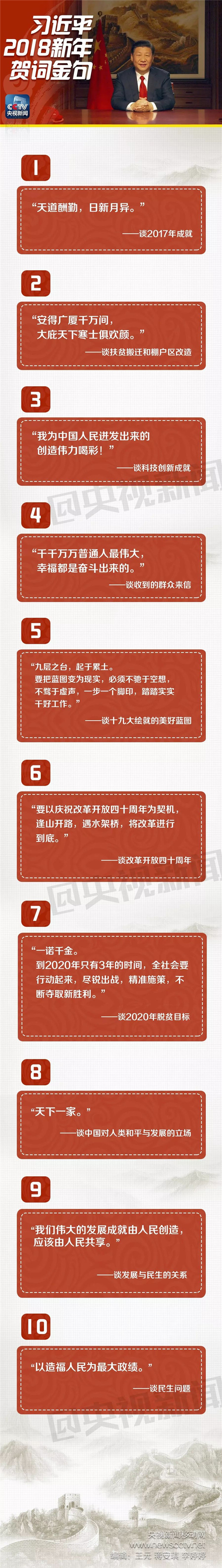 习近平2018新年贺词中必学的10大“金句”