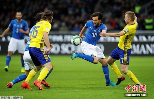 资料图:北京时间2017年11月14日,世界杯预赛附加赛中,意大利队马尔科·帕洛洛带球过人。附加赛中,意大利遇到瑞典,瑞典在主场迎战意大利的比赛中,攻入了唯一进球,拿下了一场极为重要的胜利。