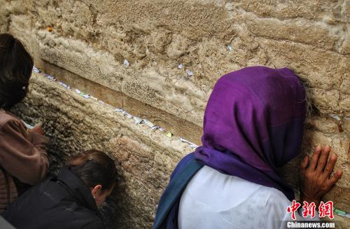 资料图:犹太教徒在耶路撒冷哭墙祷告。哭墙又称西墙,是耶路撒冷旧城古代犹太国第二圣殿护墙的一段,也是第二圣殿护墙的仅存遗址,长约50米,高约18米,由大石块筑成。中新网记者 李雨昕 摄