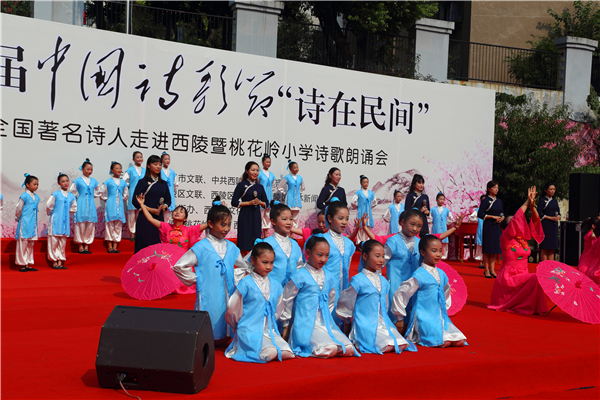 2017年9月14日,第五届中国诗歌节“诗在民间”全国著名诗人走进西陵暨桃花岭小学诗歌朗诵会。该校新月诗社的老师和同学们为大家展示《唐诗里的中国》。