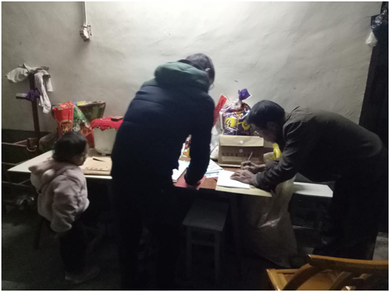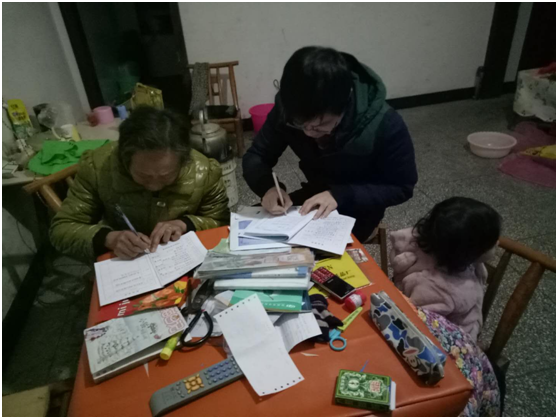 2017年12月20日晚上6点左右,秭归县第一中学的乐承龙老师从秭归新县城出发,行车40多分钟终于到达了位于茅坪镇溪口坪村八组的贫困户赵士容家。对于这条路,乐老师是再熟悉不过的了,因为两年来他已经记不清在这条路上已经走过了多少回。但是这一次对于乐老师却是最特殊的一次,因为这一次随他一起的还有他的妻子和三岁的女儿。原来上个月乐老师因为意外导致髌骨骨折,才做了内固定手术,手术伤口还没有愈合,膝盖不能弯曲,步行非常困难,他妻子为了支持他的扶贫工作,下班后,在她和女儿的搀扶下,踏上了扶贫走访之路。