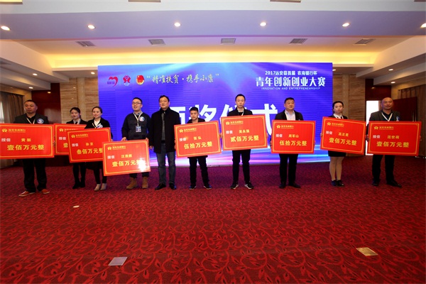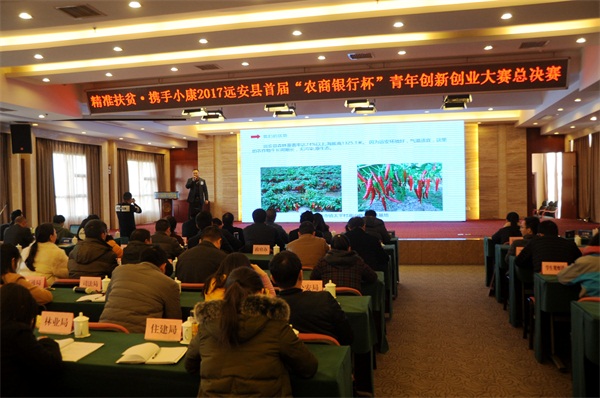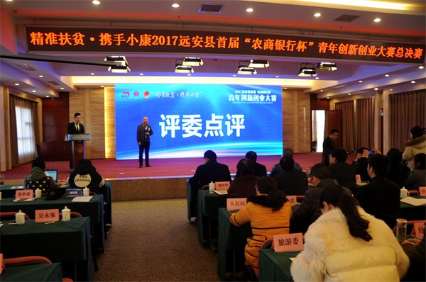 本网讯(记者黄魁、通讯员石蔷薇)12月22日,“精准扶贫?携手小康”2017年远安县首届“农商银行杯”青年创新创业大赛总决赛在鸣凤宾馆举行,团市委副书记高大权,县领导唐厚胜、彭立明出席本次活动并为获奖选手颁奖。